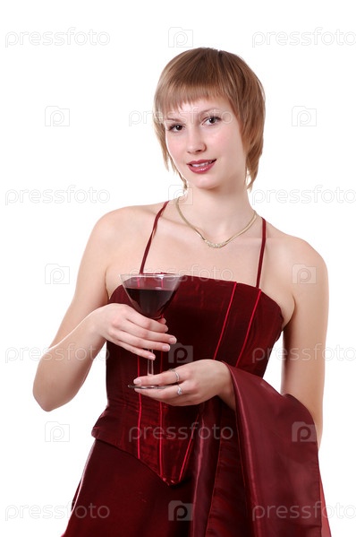 Молодая женщина с бокалом вина на белом фоне