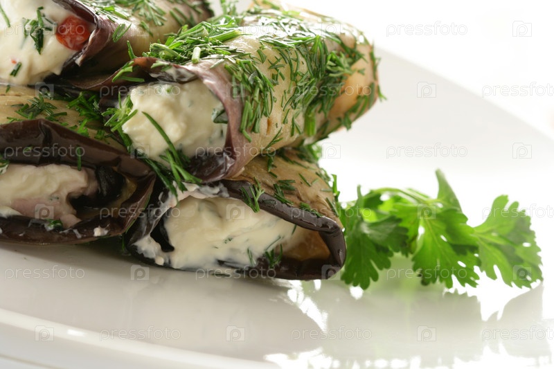 Холодная закуска из сыра и жареных баклажанов