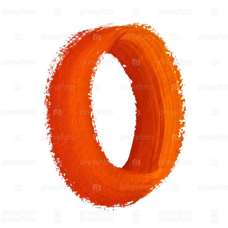 Нарисованная оранжевой краской цифра 0 на белом фоне