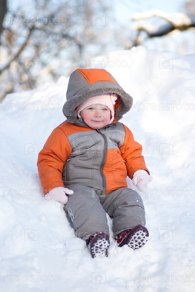 Ребенок сидит в сугробе