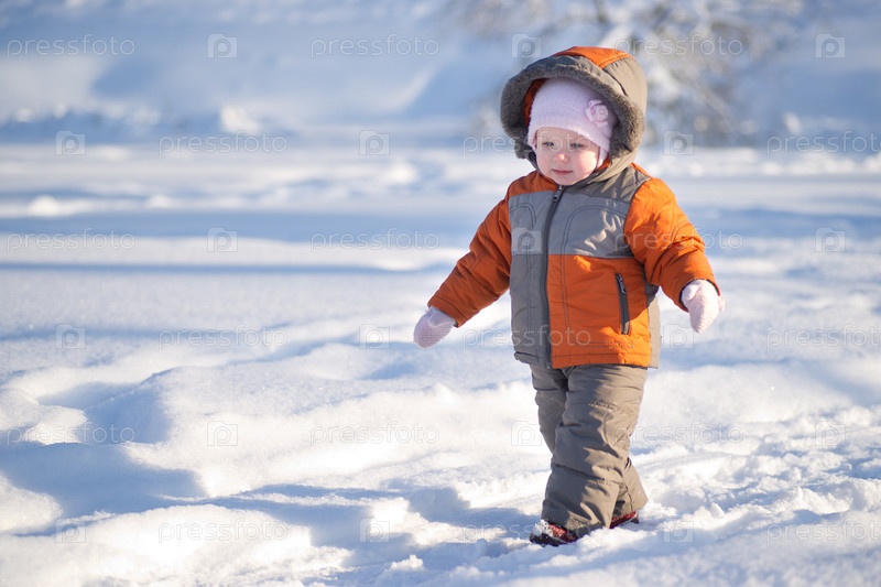 Ребенок идет по заснеженному полю