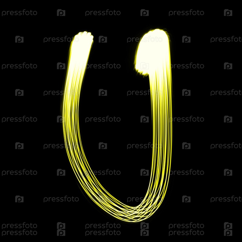 Светящаяся буква U английского алфавита на черном фоне