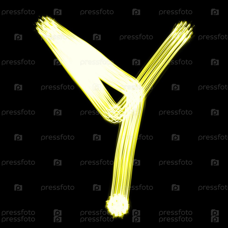 Светящаяся буква Y английского алфавита на черном фоне
