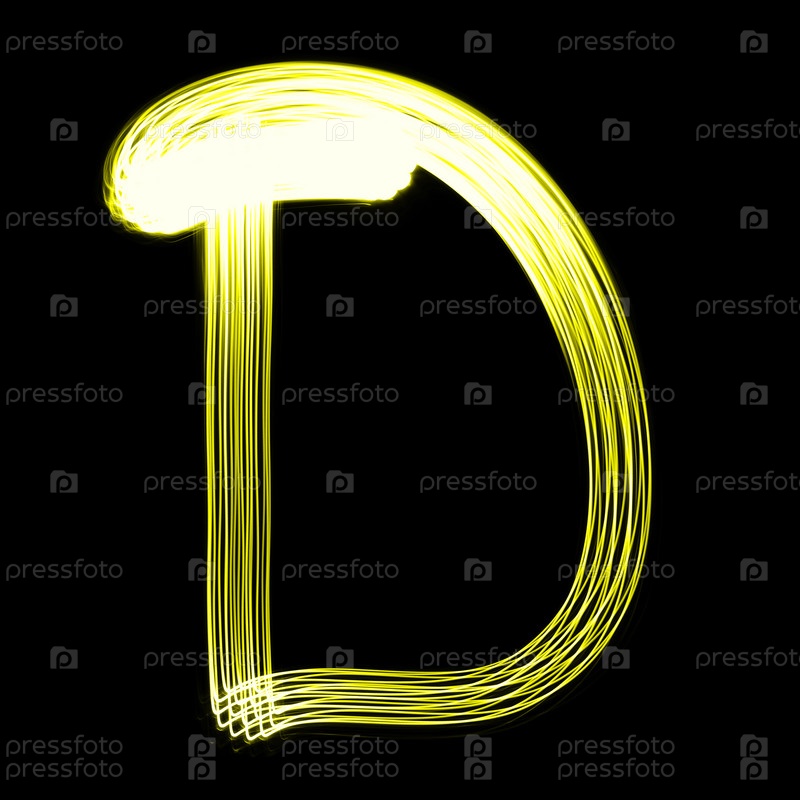 Светящаяся буква D английского алфавита на черном фоне