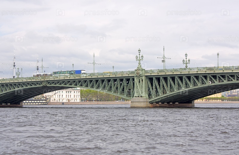Вид на Троицкий мост и реку Неву. Санкт-Петербург, Россия