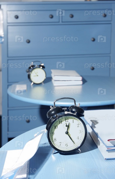 Два будильника на фоне шкафчика
