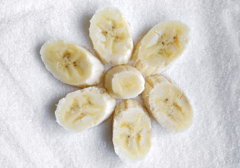 Дольки банана в виде цветка на сахарном песке