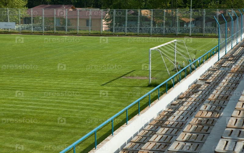 Пустое футбольное поле с трибунами