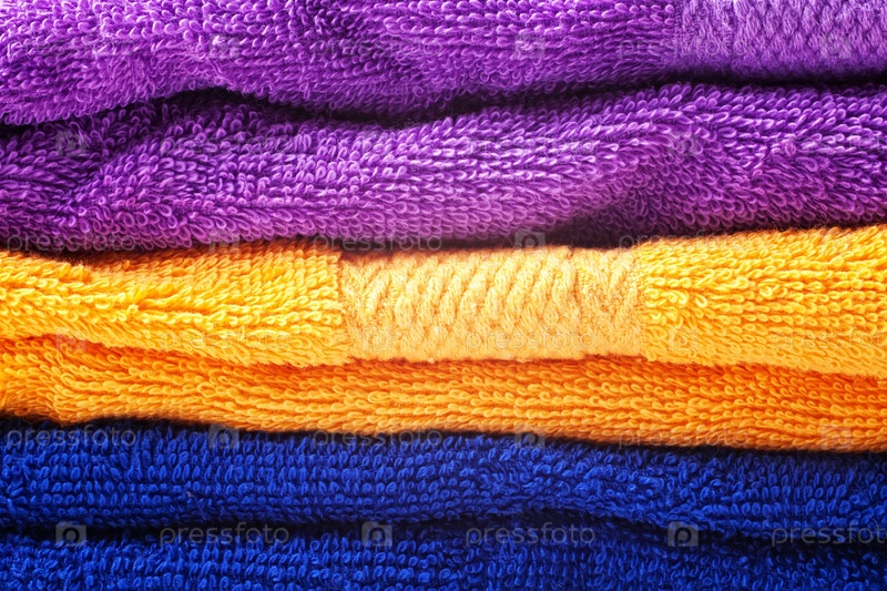 Стопка цветных махровых полотенец