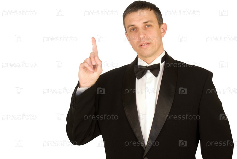Портрет элегантного мужчины в классическом смокинге на белом фоне