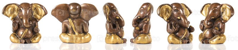 Статуэтки бога мудрости и благополучия Ганеши, изолированные на белом фоне