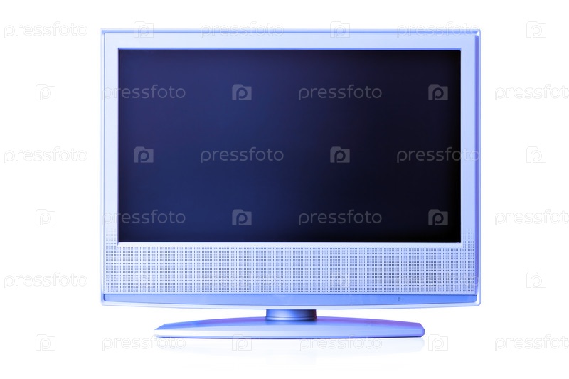 Плоский жидкокристаллический телевизор или монитор с черным экраном, на белом фоне
