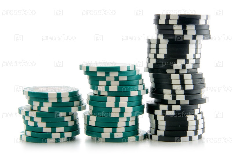 Фишки для игры в казино, крупный план на белом фоне