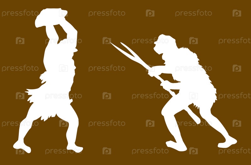 Силуэты древних людей на коричневом фоне