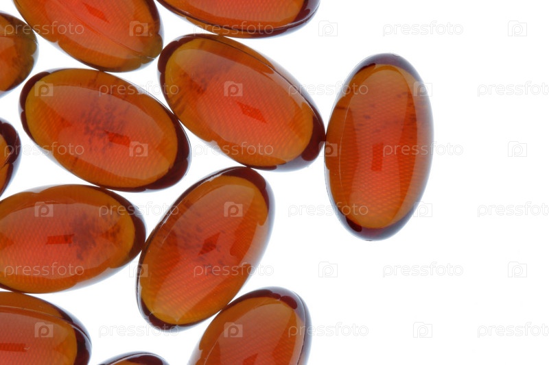 Красные капсулы крупным планом, изолированные на белом фоне