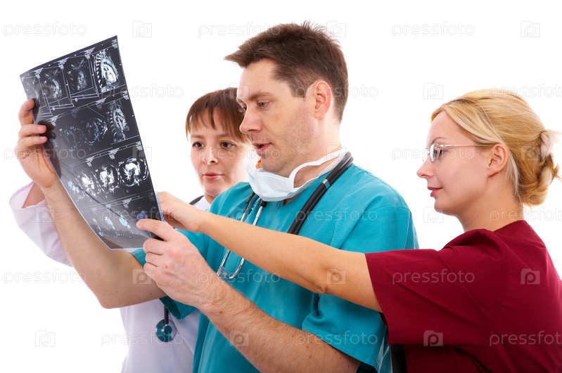 Медицинский персонал изучает рентгеновский снимок