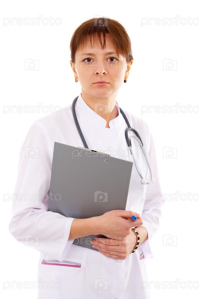Женщина-врач со стетоскопом, изолированная на белом фоне
