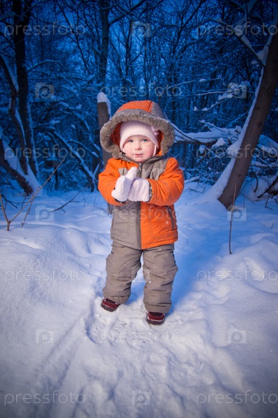 Маленький ребенок в зимнем парке