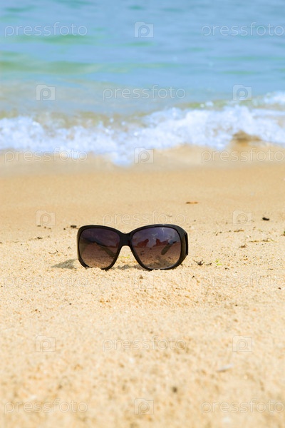 Солнцезащитные очки лежат на пляже
