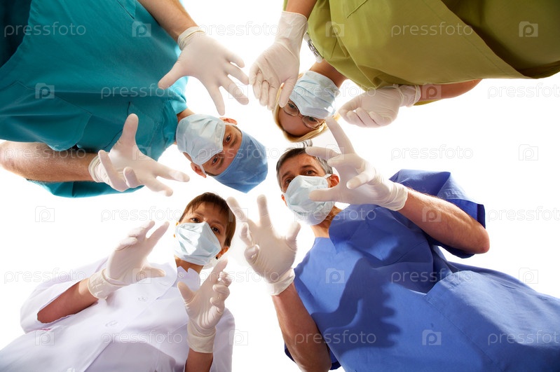 Бригада врачей в медицинских перчатках