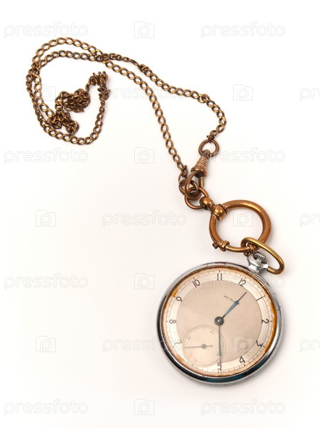 Карманные часы с цепочкой на белом фоне