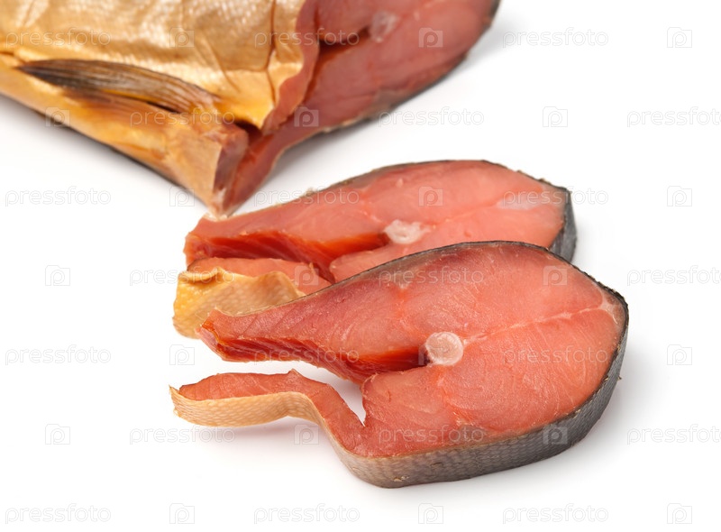 Порционные куски красной рыбы на белом фоне