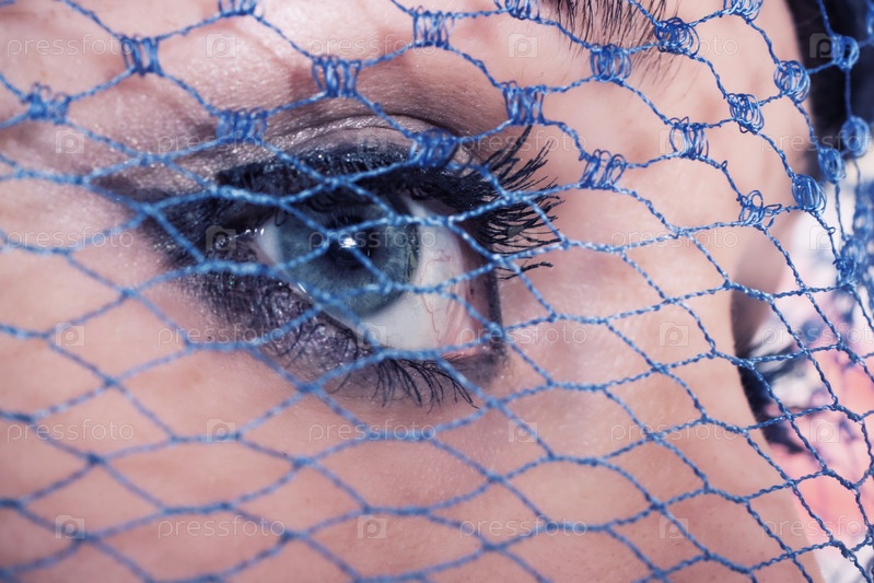 Красивые синие глаза молодой женщины под вуалью