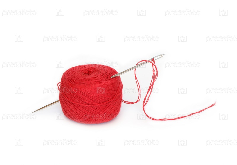 Красный клубок с иглой на белом фоне
