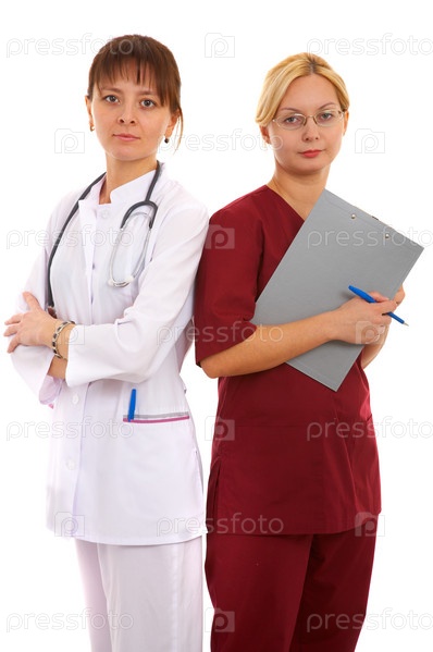 Женщина-врач со стетоскопом и медсестра