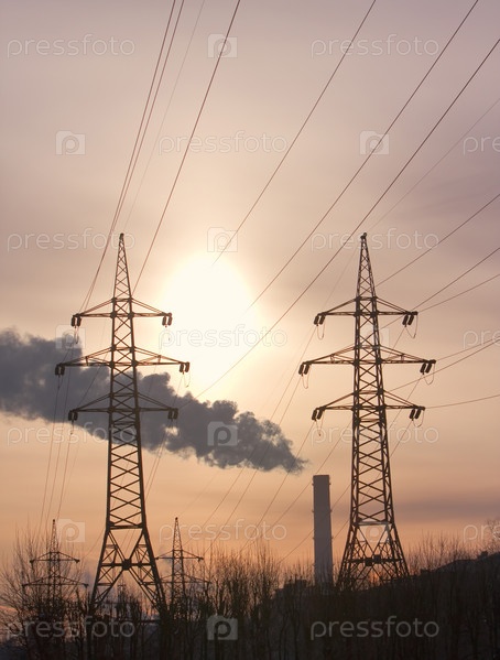 Труба с дымом и линии электропередач