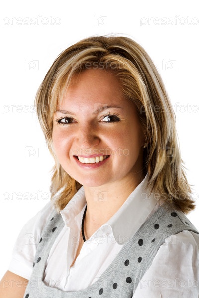 Портрет счастливой женщины, изолированной на белом