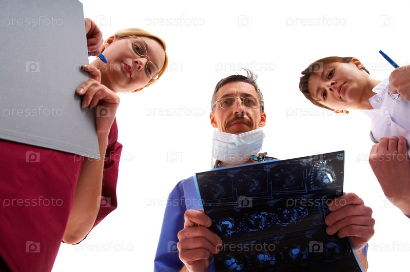 Медсестра и два врача смотрят вниз