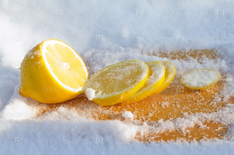 Разрезанный лимон на снегу