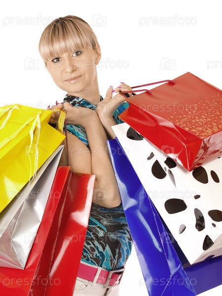Девушка с цветными пакетами для покупок