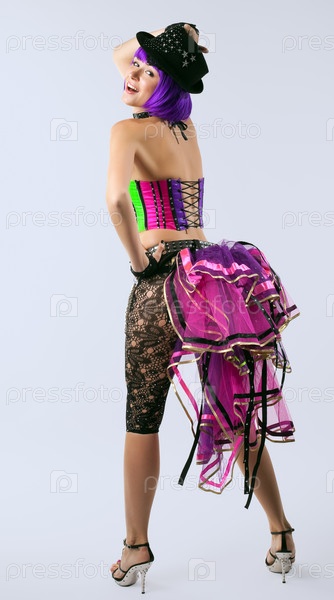 Блондинка танцует в эротическом костюме со шляпой