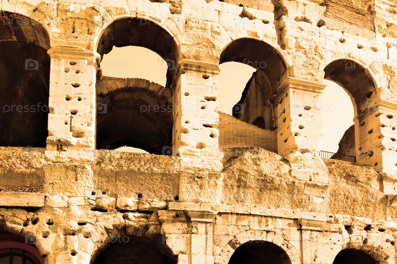 Стена Колизея в Риме крупным планом, Италия, сепия