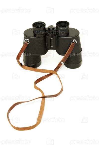 Старый бинокль на белом фоне