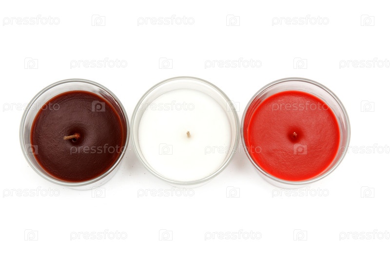 Три ароматические свечи на белом фоне