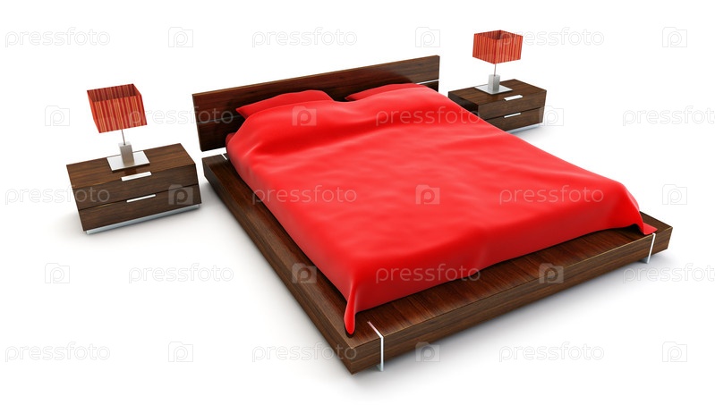 Современный интерьер спальни на белом фоне