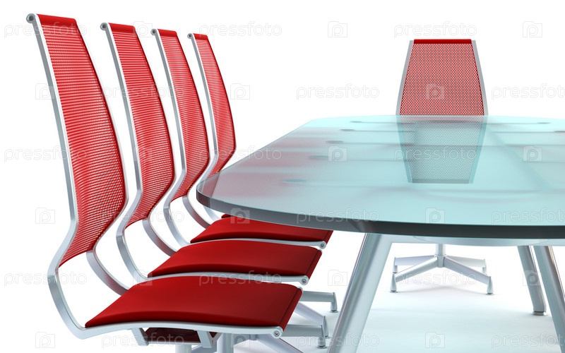 Стол заседаний со стульями на белом фоне