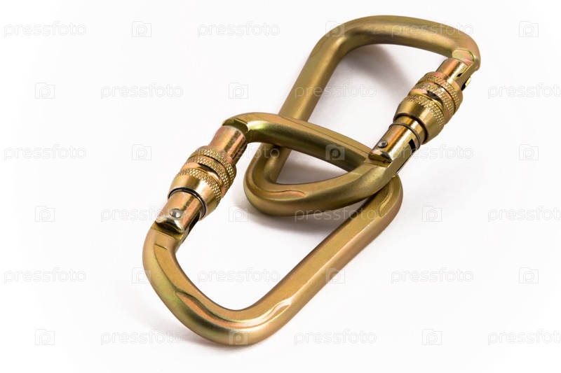 Металлические карабины на белом фоне