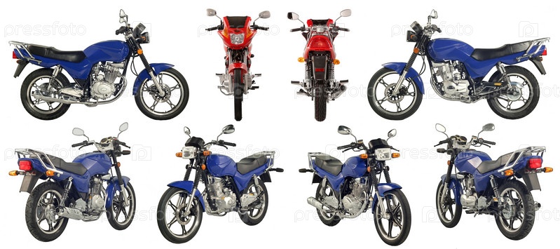 Сборник фотографий скутеров и мотоциклов на белом фоне.Некоторые изображения из разных сокращений в одном файле