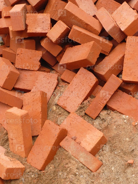 Куча красных кирпичей днем