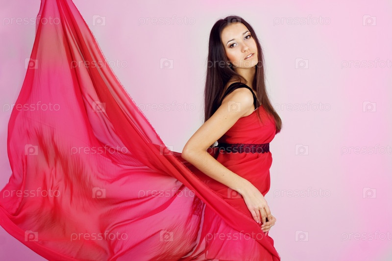 Красивая девушка в красном платье