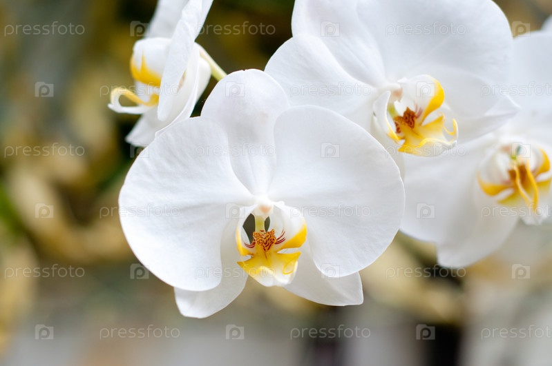 Ветка белой крупной орхидеи на цветном фоне