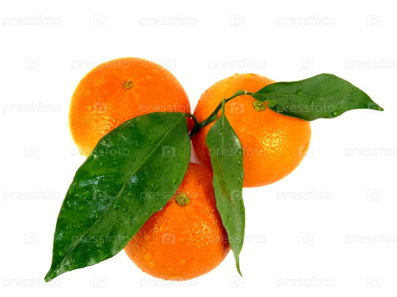 Мандарины с листьями на белом фоне