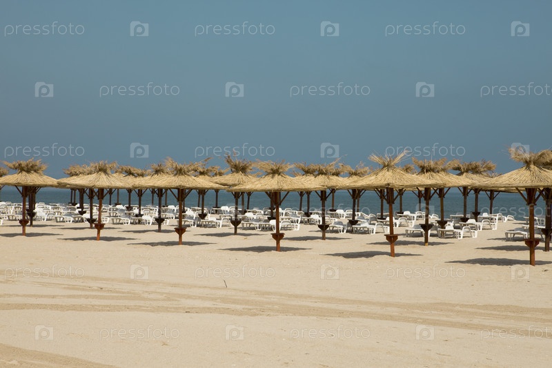 Соломенные зонты на пустом пляже