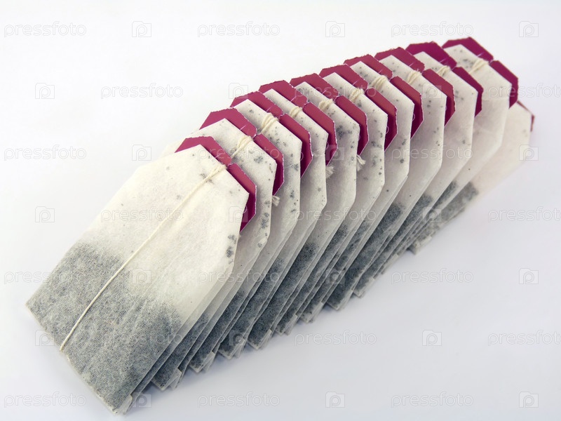 Пакетики чая на белом фоне