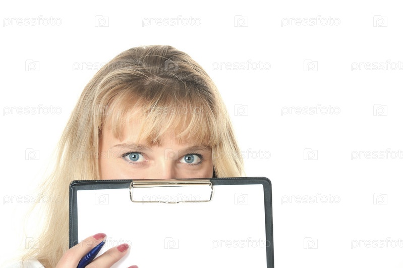Молодая девушка с листом белой бумаги в руках, крупный план