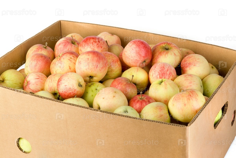Коробка с собранными яблоками
